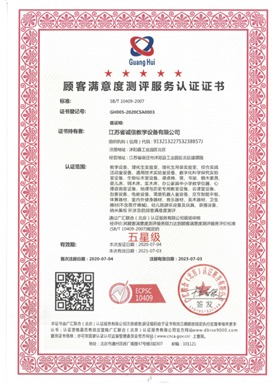 顧客滿意度測評服務認證證書